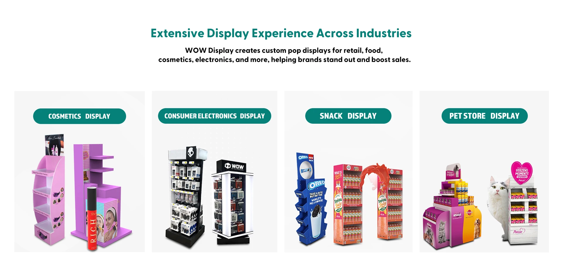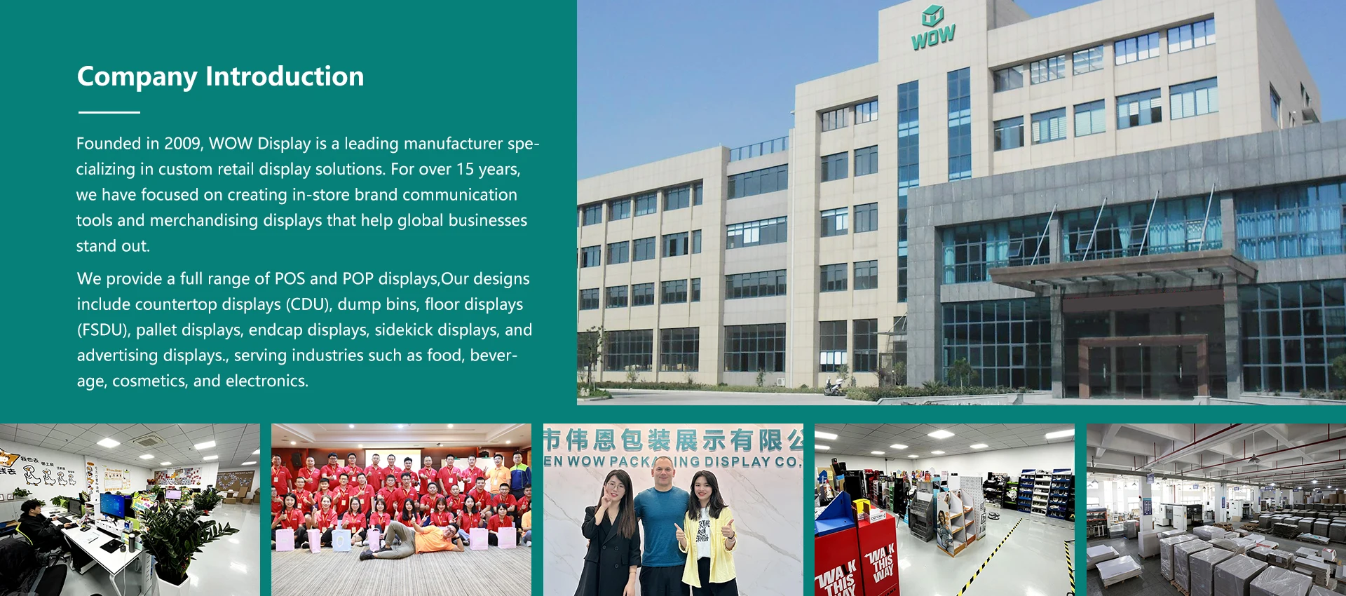 주요 제품:골판지 디스플레이, PVC 디스플레이, 금속 디스플레이, 아크릴 디스플레이, 목재 디스플레이